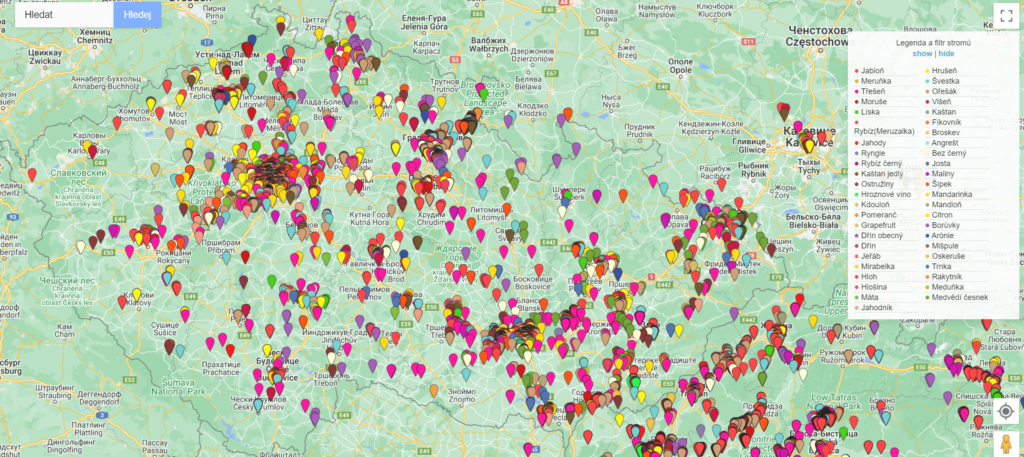 Инициатива Na ovoce предлагает онлайн-карту и мобильное приложение, которые помогают пользователям находить места, где растут фрукты, ягоды и орехи. Открыв карту, вы найдете рядом возле себя места, где можно бесплатно собрать черешню, абрикосы, яблоки и много другое. Этот проект охватывает всю Чехию, но наиболее активно развивается именно в Праге.