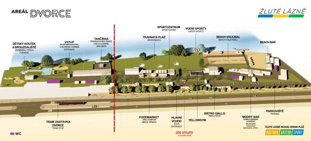 Чтобы компенсировать жителям Праги эту потерю, муниципалитет Прага-6 договорился с владельцем об аренде небольшого участка земли с выходом к воде. На этом участке установлены туалеты и работает киоск с напитками и закусками.